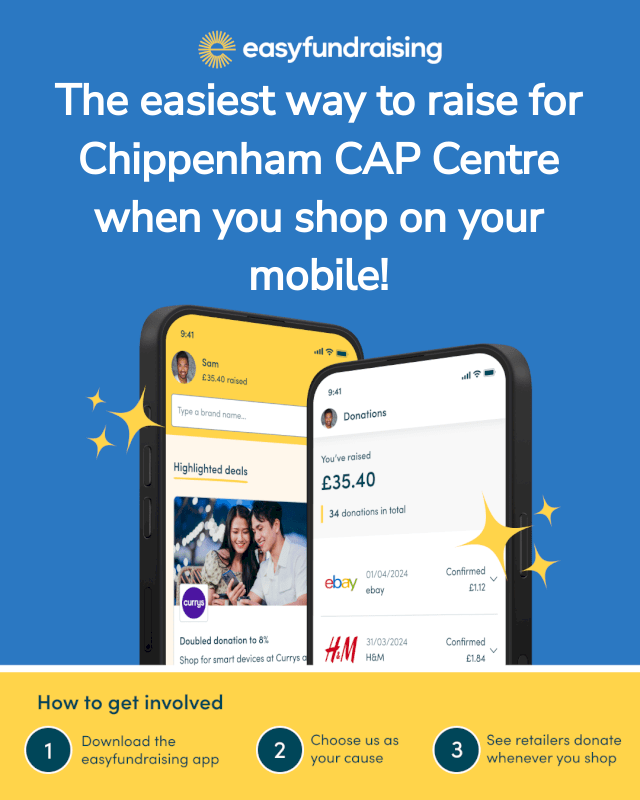 Did you know that whenever you buy anything online – from your weekly shop to your annual holiday – you could be raising free donations for Chippenham CAP Centre with easyfundraising? There are over 8,000 retailers on board ready to make a donation – including eBay, Argos, John Lewis & Partners, ASOS, Booking.com and M&S – and it won’t cost you a penny extra to help us raise funds.